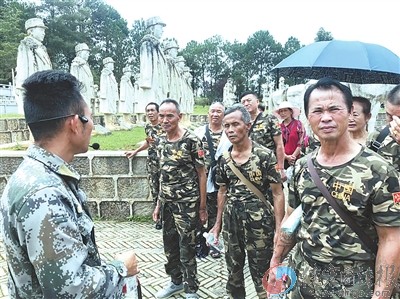 中国人民解放军原昆明军区35403部队的部分德宏籍退役老兵7月27日到龙陵县瞻仰松山抗战遗址,深切缅怀抗战英雄。