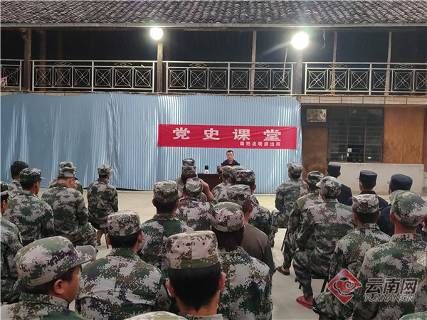 自“边境夜学”党史课堂开课以来,云南省德宏傣族景颇族自治州德宏边境管理支队陇把边境派出所龙安屯警点楼前灯火通明,院场上传来授课员铿锵有力的声音。党史课堂不仅成为广大民警、辅警、民兵、护边员工作生活的一部分,也成为该所学习教育环节的“长设课程”。