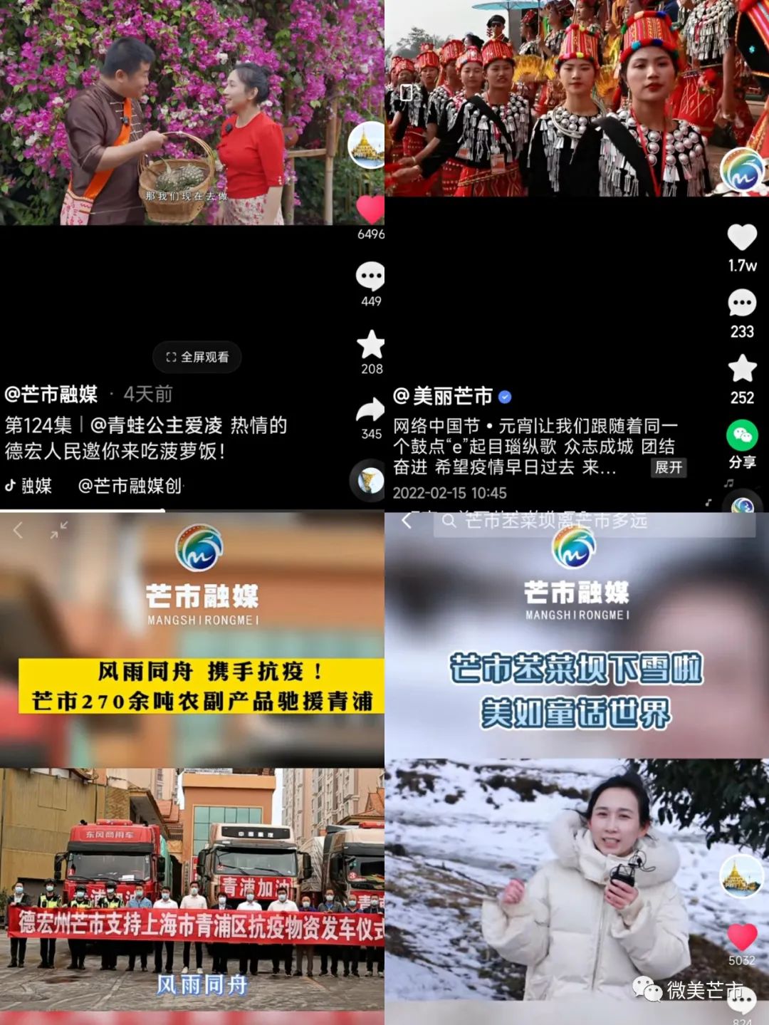 3月25日,芒市遮放发生疫情后,中心立即将每周调度提升为每日调度,统筹推进疫情防控、创建全国文明城市、民族团结进步示范市迎检等重点宣传项目,短短14天时间,共创作发布了541条信息,清明节文明祭祀、民族团结进步公益短视频、线上泼水节节目储备同时进行,干事创业的氛围空前浓厚。在前线,派出业务精干力量在遮放管控区驻守,深入挖掘抗疫感人故事,《芒市暖心“大白”为隔离村民喂养牲畜家禽》《芒市这份“暖心大礼包”焐热了隔离群众的心》被人民日报、新华社等中央媒体采用;在后方,各项目负责人齐心协力,认真做好官方权威信息发布,反面典型曝光、主播说防疫、健康小课堂等栏目持续发力,为全市上下同心抗疫营造了良好氛围。