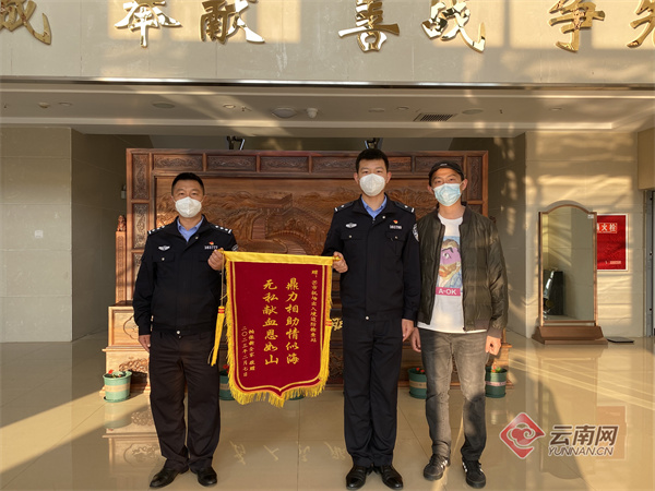 2月10日下午,德宏傣族景颇族自治州芒市驻地村民帕宝新带着一面锦旗来到芒市机场出入境边防检查站,亲手将写着“无私献血恩如山,鼎力相助情似海”的锦旗递到伸出生命援助之手的民警手上。
