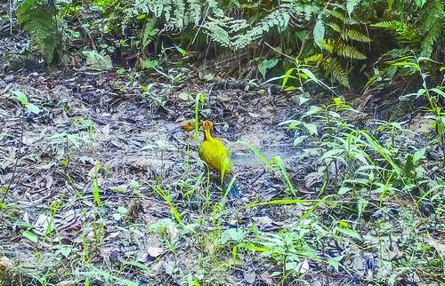 梁河县林业和草原局近日在整理红外相机监测数据时,惊喜发现国家Ⅱ级保护野生动物大黄冠啄木鸟与银耳相思鸟在林区小水洼同框嬉戏的珍贵画面。这一发现不仅填补了县域内大黄冠啄木鸟物种观测的空白,更直观印证了梁河生态环境的持续优化。