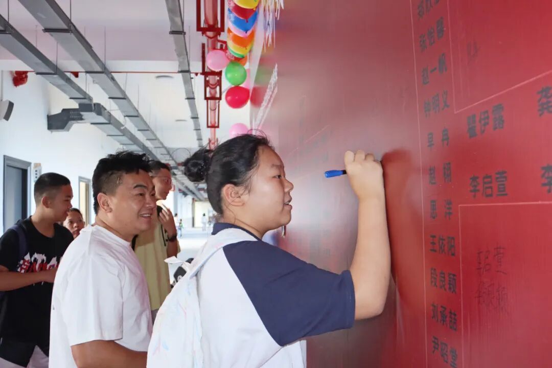 红毯仪式和签名墙吸引了众多学生和家长的目光,孩子们开心地踏上红毯,在签名墙上认真写下自己的名字,并与老师、同学合影留念,记录下这一难忘的时刻。