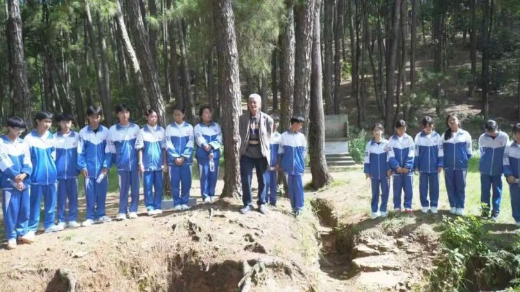“在我们眼前的就是当年松山战役留下的战壕,像这样的战壕这里有很多……”上午9时许,同学们在战壕遗迹旁认真聆听退役老兵杨明志讲述松山战役历史。爷爷朴实真挚的话语,让爱国主义精神深深扎根在学生心中。