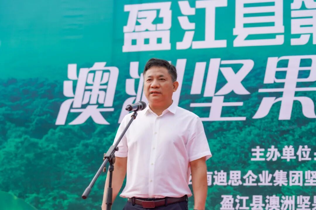 查金鹏在致辞时说,近年来,盈江县坚定不移走生态优先、绿色发展之路,持续将澳洲坚果产业作为促进群众增收、推动乡村振兴的特色优势产业重点打造;如今,一颗颗饱满的坚果,已成为名副其实的“致富果”“幸福果”。让我们以此次开采节为新的契机,共同采摘丰收的喜悦,共享发展的成果,携手奋斗,将“小坚果”真正做成推动盈江乡村振兴、富民强县的“大产业”!
