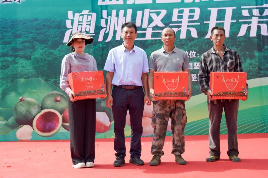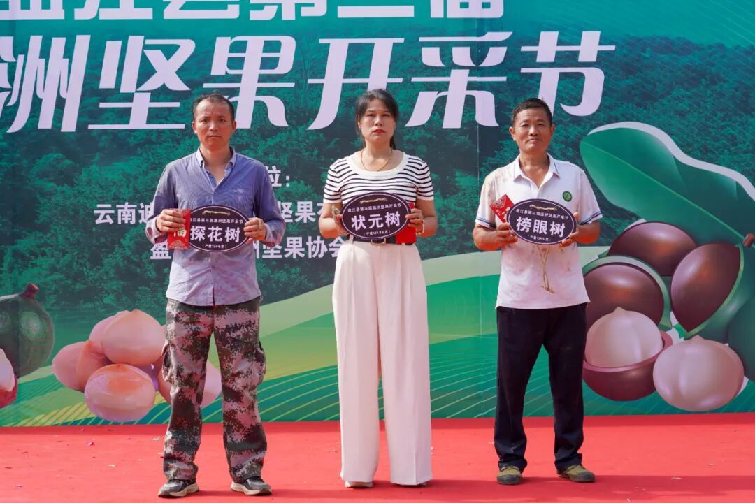 为进一步点燃现场氛围,活动还精心设置了“状元树” 评比、寻找“澳洲坚果王”、采摘技能大比拼三大特色环节。经过评比,新城乡杨明芳、太平镇王华昌、迪思公司孟成正三位种植户的坚果树,分别获得“状元树”“榜眼树”“探花树”称号;穆自勇、孟成正、刀洪连摘得“采摘能手”前三名;段其华、刀洪连、孙志召获评寻找“澳洲坚果王”前三名。