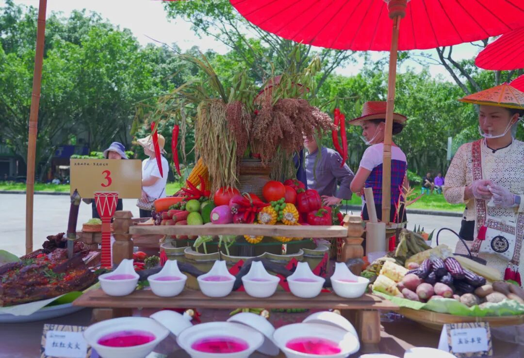 外地游客也被吸引过来,来自杭州的一名游客说:“很多食材都是我第一次见,既生态又美味,酸辣口味特别适合芒市的天气,摆盘也充满了丰收的喜悦。”