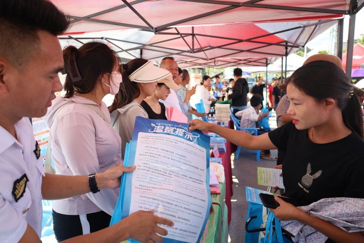 瑞丽市19家单位联合搭建“科普长廊”,以中缅双语的方式,现场开展妇女儿童保护、劳动安全、防震减灾、生态环境保护等知识宣传,为广大中缅籍员工送上了贴心的科普礼包。(记者 王磊)