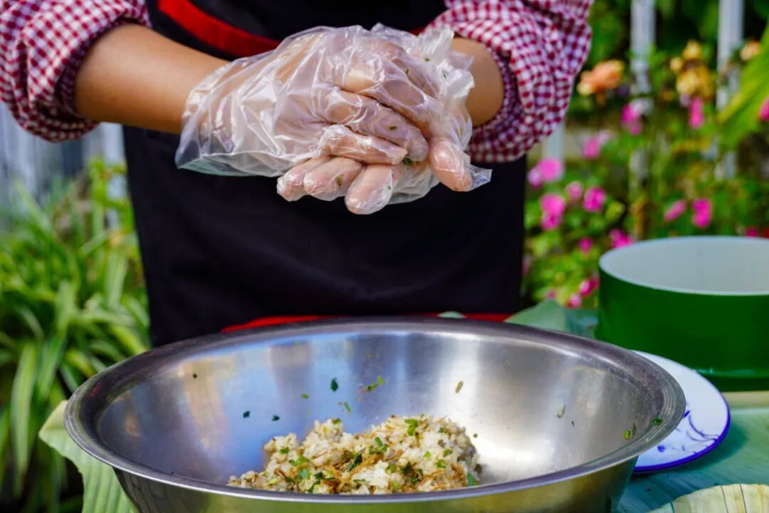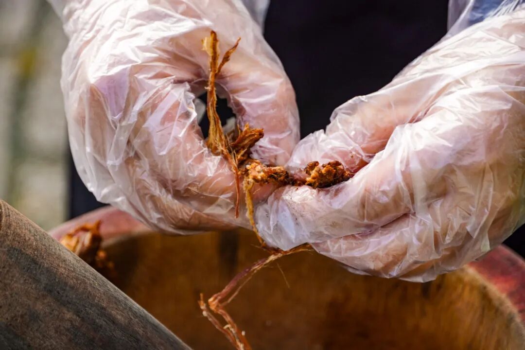 揉搓均匀之后,取一团饭,趁热在掌心反复揉捏、攥紧。手掌的温度让米饭更加黏糯,力道让米粒间紧密融合。这个过程,充满了原始的仪式感,仿佛将景颇人对山野自然的理解与生活的热情,都一并揉进了这团饭里。