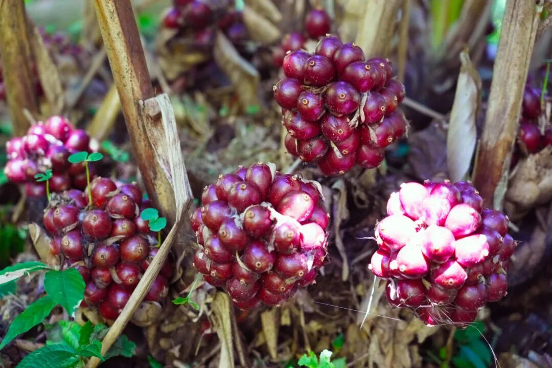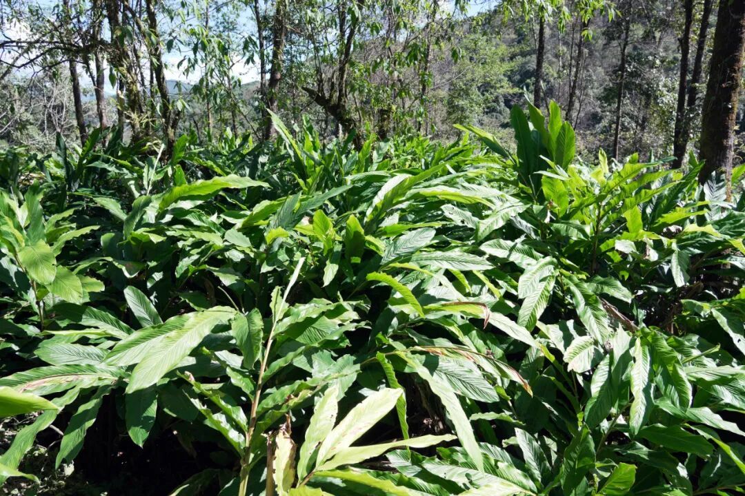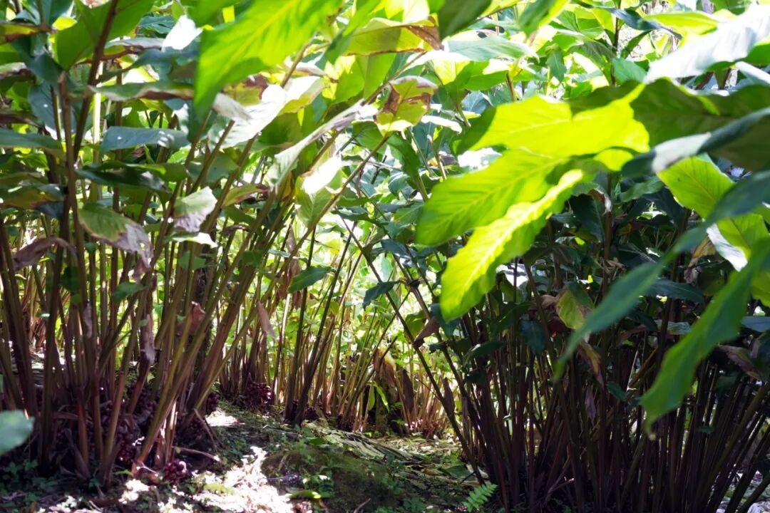 在草果种植基地,草果植株长势旺盛,连片的草果林顺着山势铺展,翠绿的叶片层层叠叠,像撑开的绿伞护住地面。在叶片掩映间,一串串一颗颗红得像玛瑙似的草果格外惹眼,空气中弥漫着果实特有的清香,深吸一口,满是山林的清新与丰收的气息。