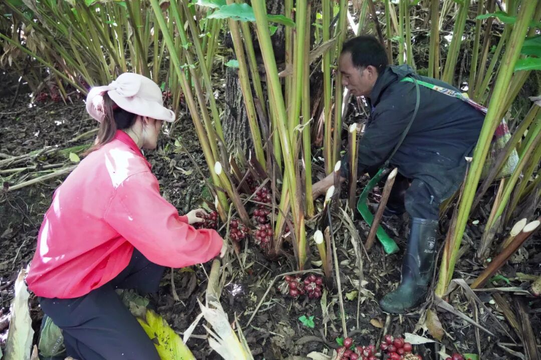近期,盈江县13.5万亩投产草果陆续进入采收期,鲜红饱满的果实藏在林下,农户们穿梭其间忙着采摘,一派丰收忙碌的喜人景象。2025年该产业预计带动7.5万余人增收,人均增收近5000元,成为山区老百姓的“致富果”。