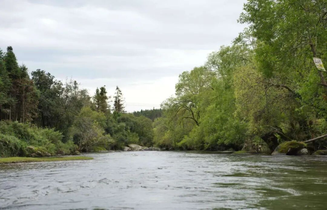 两岸青山如黛,阳光穿过层层叠叠的阔叶林,在浅滩上投下摇曳的光影。偶有鸟鸣清脆,成群的鹭鸶展翅掠过水面,野鸭在芦苇丛中探头张望。此情此景,让人恍惚:究竟是行入画中,还是画中山水因我而生动?