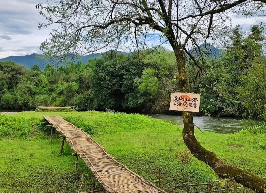 坐在河滩秋千上缓缓摇曳,看夕阳将河面染成一片金箔。潺潺水声伴着山风,奏响最令人放松的自然乐章。这里没有喧闹的游客,只有让人静心放空的悠然:牛群踱步至河边饮水,惊起几只白鹭;山脚寨子里炊烟袅袅,与天边晚霞交织成淡粉色的轻纱。