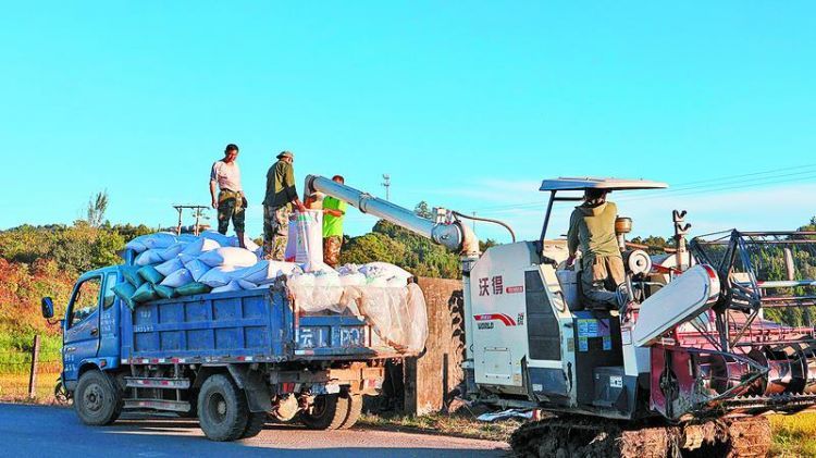 “今年雨水匀、日照足,稻子长得比往年饱满。我家的3亩稻田收了50多袋谷子,除了自家口粮,多余的还能卖个好价钱。”正在院坝翻晒稻谷的李大妈笑意盎然。“家里的10亩稻田,不到半天就收完了。”站在田边协调收割的岳大哥高兴地说,“现在全程机械化,效率高、损失少,再也不用全家老小齐上阵忙活好几天了。”