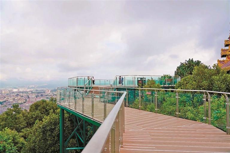 新建成的观景长廊以坚固的钢架结构为主体,配以通透的玻璃围栏,确保了视野的开阔与游览安全。长廊总面积为1100多平方米,可同时容纳近500人。长廊的建成大大拓宽了游客的游览视角,游客可以信步于长廊之上,轻松地将芒市城区的壮丽景色尽收眼底,并以城市风光为背景,与雄伟的金塔拍摄出更具层次感和故事性的照片,让游览勐焕大金塔的体验感变得更加丰富。(记者 曾麻干 通讯员 杨波)