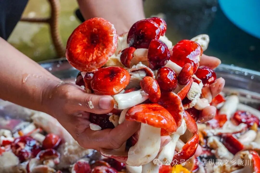 在云南众多野生菌中,有一种菌子格外特别——红菌。生长在德宏深山老林里的红菌,菌盖呈鲜艳的深红色,菌脚洁白,宛如一群红精灵,古怪可爱。每当雨季来临,这群可爱的红精灵便会如雨后春笋般冒头。