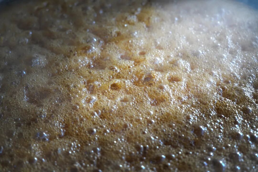 砍好的甘蔗要当天压榨,过滤后的蔗汁倒入铸铁锅,以柴火慢熬四五个小时。火候的掌控全凭经验,“冒泡要像鱼眼,颜色得是琥珀色”,腾月团守在灶台前,不时用木勺搅拌,蔗香在蒸汽中弥漫。