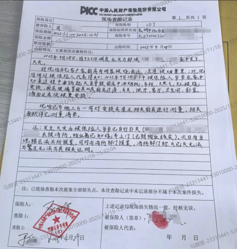理赔情况:2025年4月28日,客户家因油锅起火导致房屋受损。最终“彩云安居保”共计赔付13489.51元。