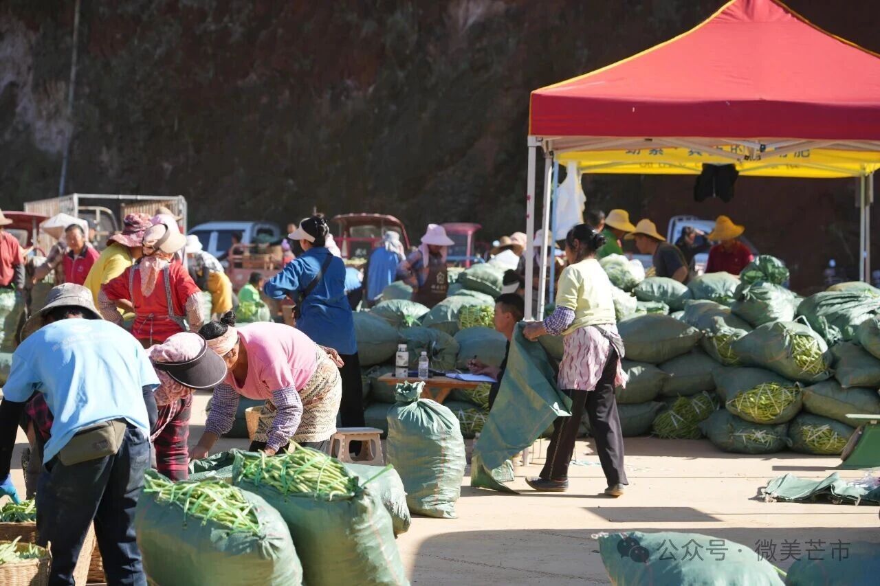 冬春季节,当北方蔬菜供应减少时,芒市的无筋豆便迎来上市高峰,凭借“反季”优势俏销全国。眼下,芒市风平镇遮晏村的田垄间,饱满的豆荚挂满藤蔓,农户们正忙碌地采摘、装筐,运往遮晏村农产品交易市场。