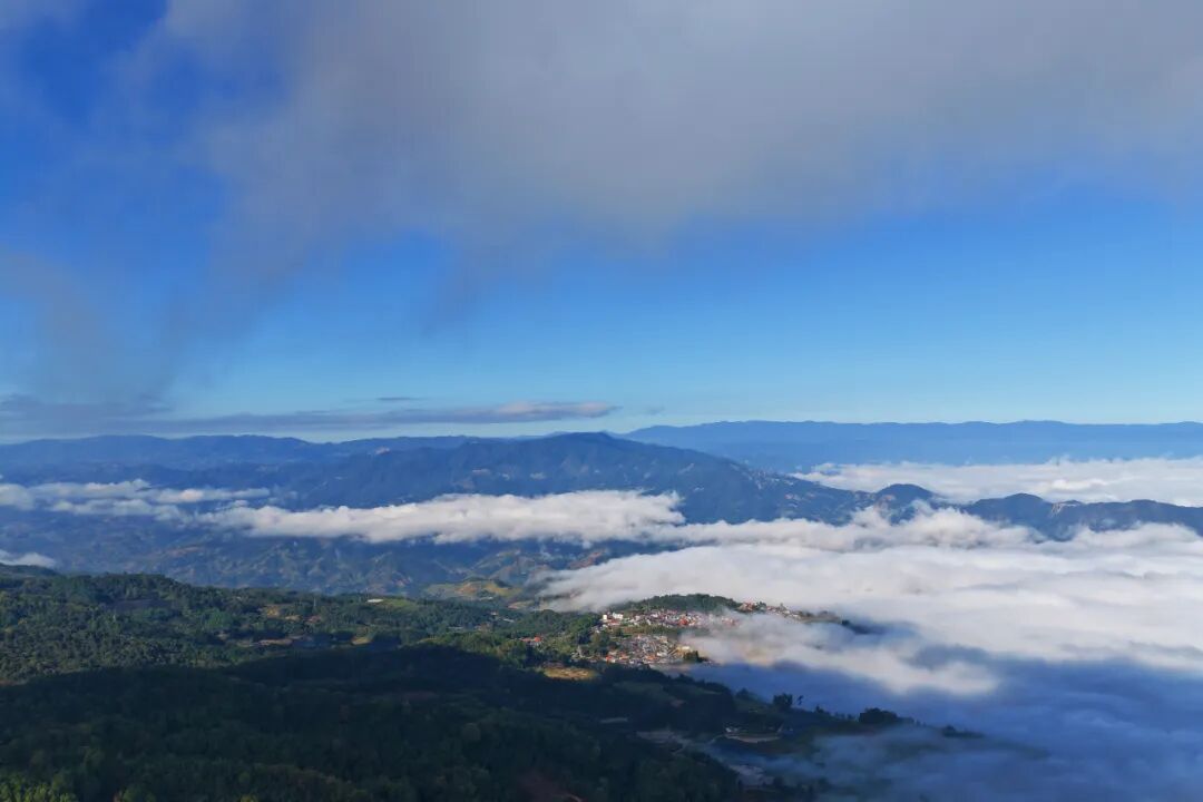 风起时,云顺着山脊流淌,宛如瀑布悬空
