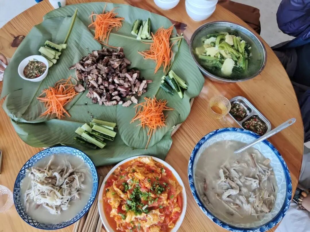 徒步中途,林间休息点备有当地村民精心烹制的农家饭,山野原生食材搭配古朴做法,一口尝尽冬日山野的淳朴滋味。