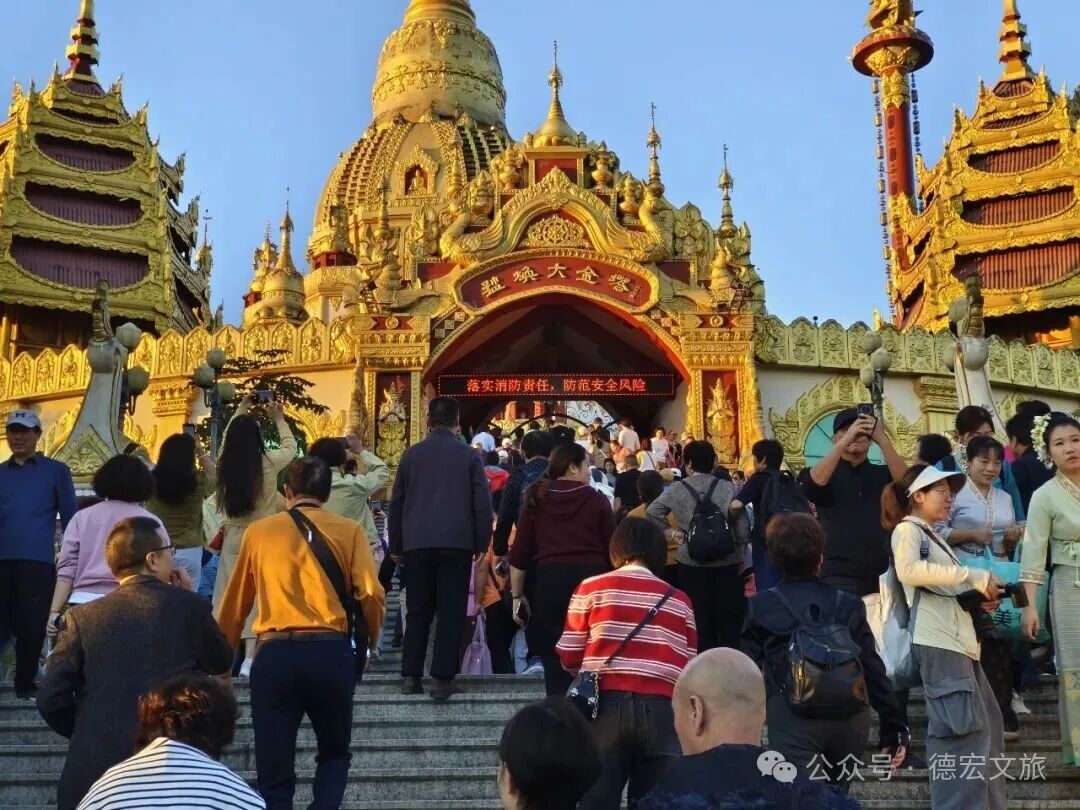 景区打卡热潮更是席卷德宏。勐焕大金塔的鎏金盛景、瑞丽一寨两国的边境奇观、莫里瀑布的生态秘境、傣族古镇、瑞丽古城的浓郁风情……每一处景区都人气爆棚,游客们边走边拍,把德宏的美定格在镜头里,记在心底里。