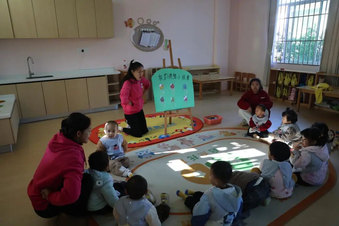 冬日暖阳透过窗户,温柔地洒进德宏傣族景颇族自治州芒市鲱鱼托育园的活动教室。孩子们围坐小桌旁,睁着大眼睛好奇地望向老师手中的小马玩偶。“宝贝,看小马是什么颜色呀?”“红色!”稚嫩的童声清脆响起。“那我们拿起小滚筒,把颜色拓印在纸上,好不好?”在老师的引导下,一双双小手开始了充满好奇的创作。园区另一角,笑声与鼓声交织;户外草坪上,几个小小的身影正快乐地追逐嬉戏,红扑扑的脸颊上洋溢着无忧无虑的笑容。