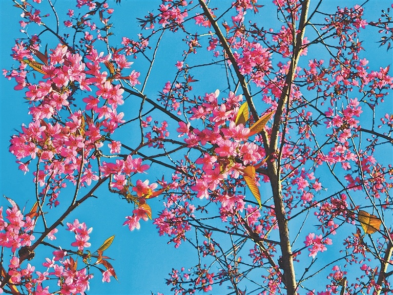 原标题:盏西:冬日樱花如霞 山野遍染浪漫粉