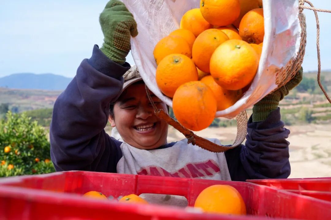 产业兴则根基稳,品质优则路行远。春日里的褚橙基地,不仅有满眼生机的美景,更有标准化种植的实干身影。“我们沿用褚橙核心种植体系,结合陇川本地气候、土壤特点优化种植技术,调整排水系统、改良酸性土壤,配上专业技术人员管理,让每棵橙子树都高标准挂果。”顾文平介绍,严谨的种植标准与科技赋能,让褚橙品质始终在线。2025/2026年度,基地褚橙收获量达5000吨,产品不仅走进国内高端商超、电商平台,更借助章凤口岸优势,逐步辐射缅甸周边市场,让陇川褚橙的清甜香飘更远。