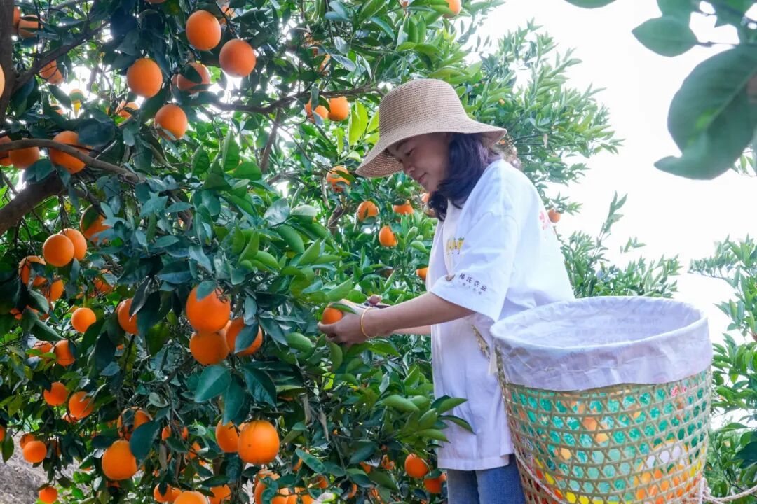 漫山橙树错落有致,翠绿枝叶间挂满了金黄饱满的果实,阳光洒下时,果皮泛着温润光泽,空气中弥漫着清甜果香。农户们挎着竹篮穿梭林间,指尖轻摘、细心分拣,欢声笑语随着橙香漫过山坡,勾勒出一幅“春和景明、橙香满径、民富景美”的边疆乡村新画卷,这便是陇川褚橙基地春日里最动人的模样。