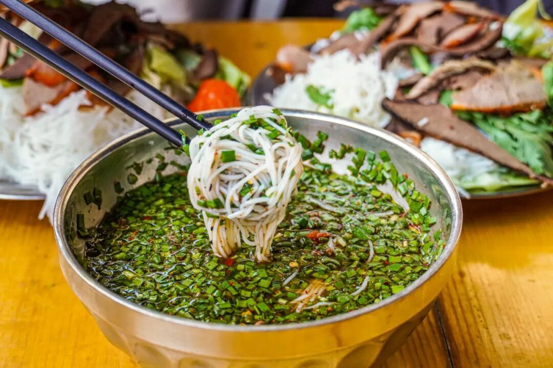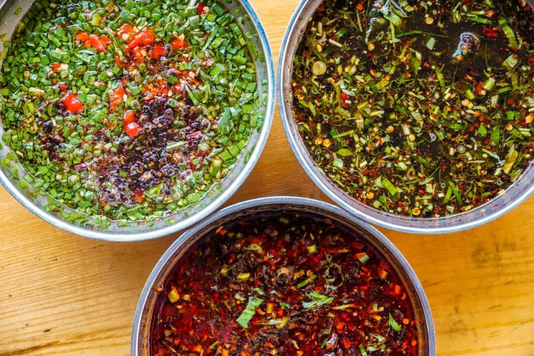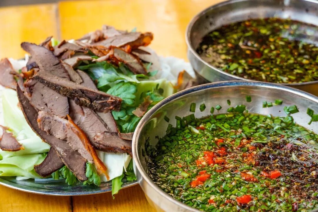 柠檬撒,用新鲜的柠檬汁为底,以酸辣为主。将熟牛肉切末,与切碎的香柳、缅芫荽、小米辣混合,加入柠檬汁,酸辣开胃,清新爽口。加上涮涮辣,再配上细米线,裹上蘸料,每一口都是对味蕾的唤醒,是酸爽开胃的绝佳选择。