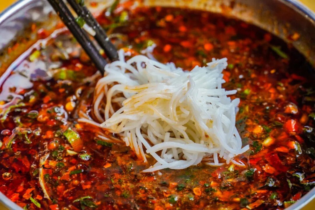 油辣子撒,香浓不腻,鲜香爽辣。喜爱香辣口味的朋友,一定不能错过这道撒撇,每一根米线都裹满了红亮亮的辣椒油,看着就让人食欲大增,油辣子的辣香扑面而来,入口即能感受到油辣子的热烈与醇厚,让你的味蕾在舌尖上跳舞。