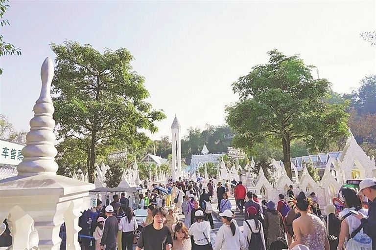 芒市银塔景区游人如织。
