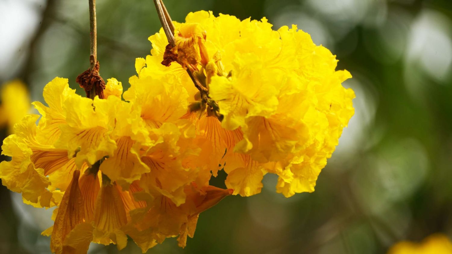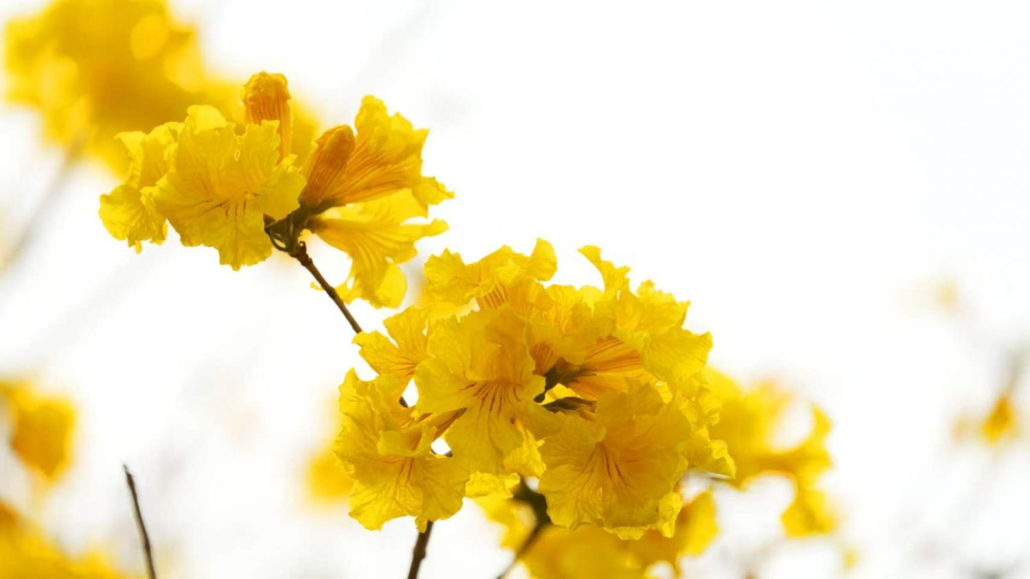 黄花风铃木又名黄钟木,先花后叶,漏斗状花冠簇生枝头,形似风铃,在暖阳下流光溢彩。眼下正值最佳观赏期,枝头无叶、繁花满冠,远观如金色云霞铺展,近看风铃轻垂、随风轻摇,奏响春日序曲。金黄花簇与瑞丽的蓝天、傣寨风情、边境烟火相融,一步一景,皆是诗意。