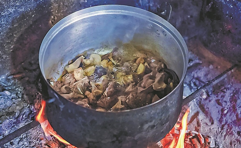 围坐在铁锅旁,端起一碗热气腾腾的野山药煮跑山鸡,一口下去,鸡肉软烂入味,一抿就脱骨;山药吸饱了汤汁,粉糯香甜,每一口都是自然的馈赠。配上一碗喷香的米饭,简单却无比满足。“这味道太地道了!比城里的餐馆好吃多了。”“亲手挖的山药,吃起来都更有滋味。”大家一边品尝美食,一边分享着挖山药、做饭的趣事,欢声笑语与柴火声、汤汁沸腾声交织在一起,构成了最温暖的乡村画卷。(记者 尹天涪 通讯员 闫信康 杨兴江 张自高)