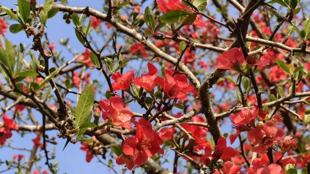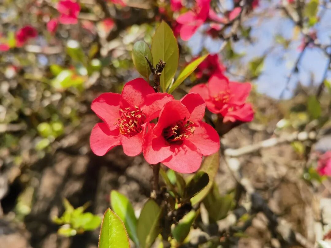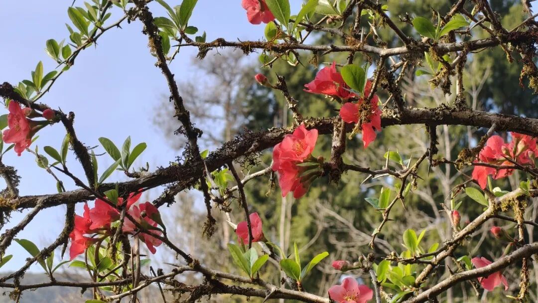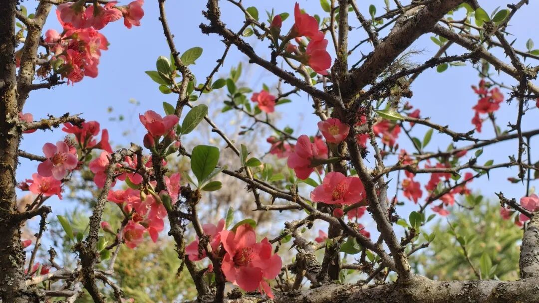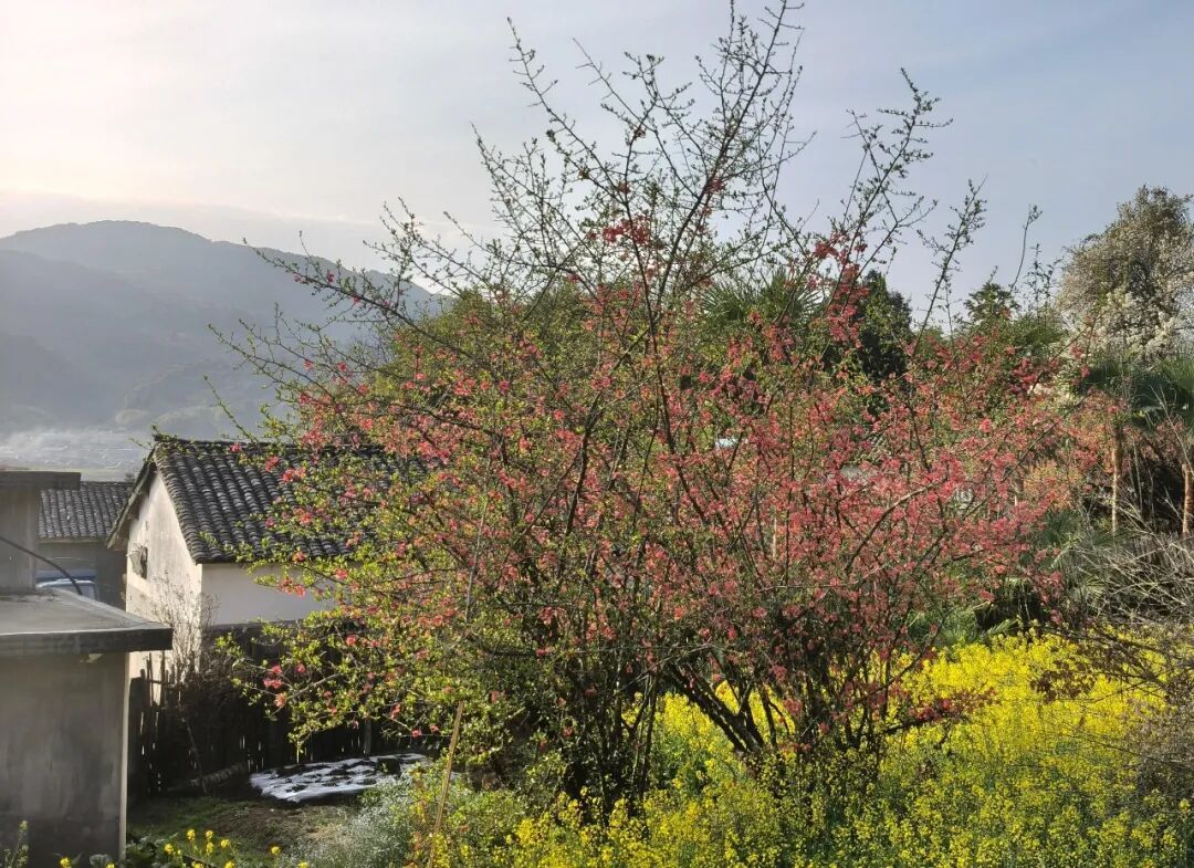房前屋后、田埂坡头、寨边路旁,虬枝苍劲的酸木瓜树上,繁花似火、如云如霞。深红、绯红、粉红层层叠叠,五瓣花瓣薄如蝉翼,在青山绿水间轻轻摇曳,明艳夺目却不张扬,质朴坚韧又自带风骨。“杏艳桃夭二月终,好花难比木瓜红”,这抹独属于滇西山野的春色,比桃花更艳、比杏花更烈,与山间云雾相映成趣,一步一景皆成诗。