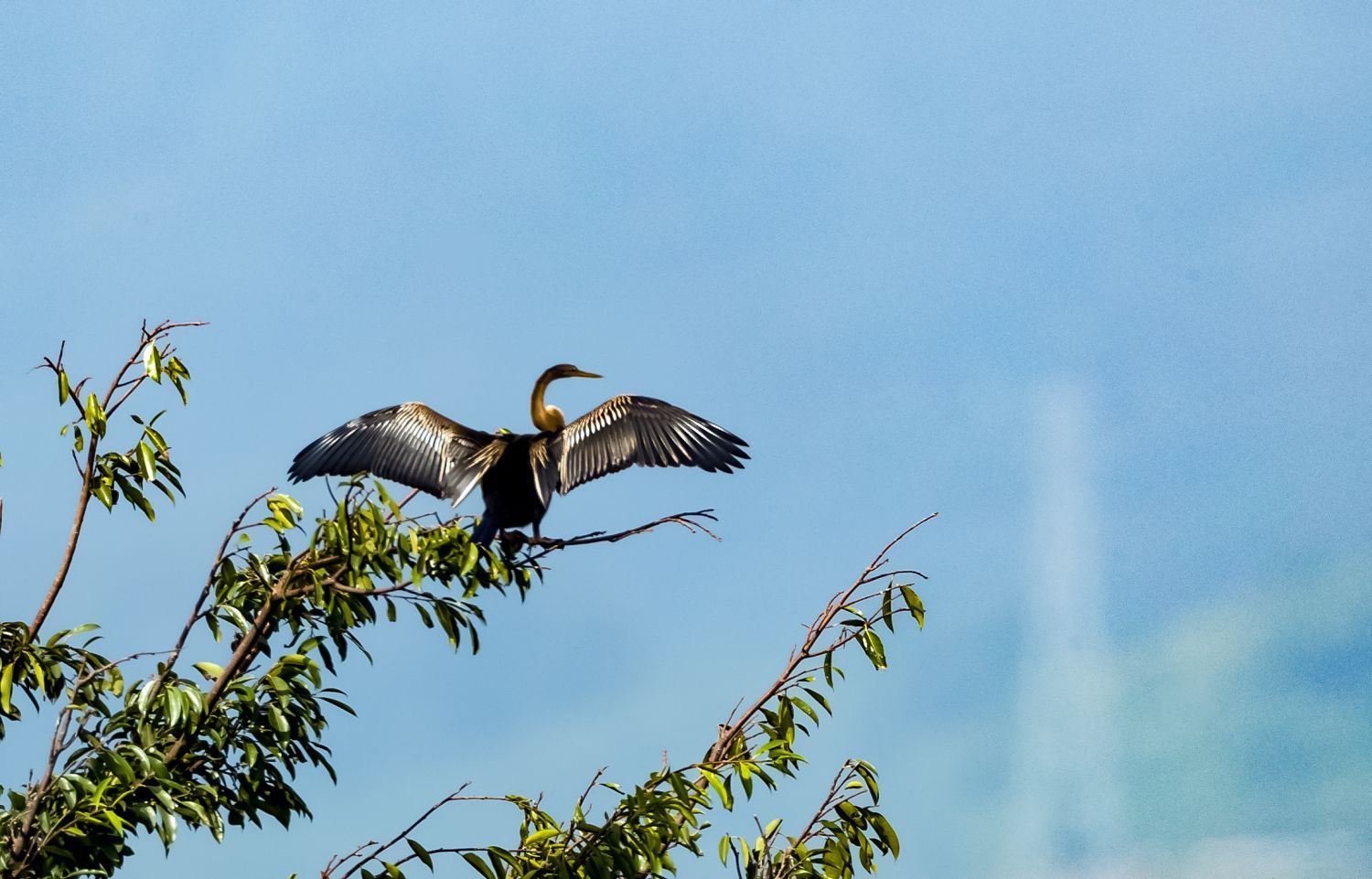 黑腹蛇鹈俗称“蛇鸟”,颈细如蛇、喙尖似矛,擅长潜水捕鱼,对水质、湿地生态系统要求极高,被列入《世界自然保护联盟濒危物种红色名录》近危物种。该物种自1931年在我国有过记录后,曾销声匿迹近百年,2021年首次在瑞丽弄莫湖被重新观测到,此后连年现身,印证瑞丽已成为其稳定栖息与迁徙停歇的优选之地。