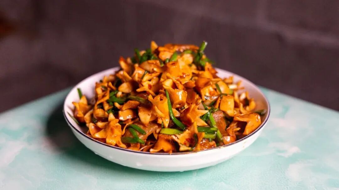 取新鲜芭蕉花,剥去外层老花瓣,只留里面嫩白 / 嫩黄的内层花瓣和花芯;将处理好的芭蕉花切成丝,放入沸水中焯烫 3-5 分钟,捞出后用清水浸泡 1-2 小时(中途换水 1 次),彻底去除涩味,沥干备用