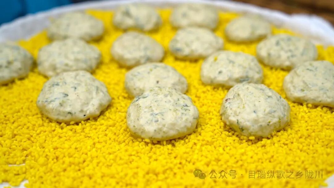 特色小吃:黄花粑粑(染饭花水+ 糯米粉 + 红糖苏子馅)