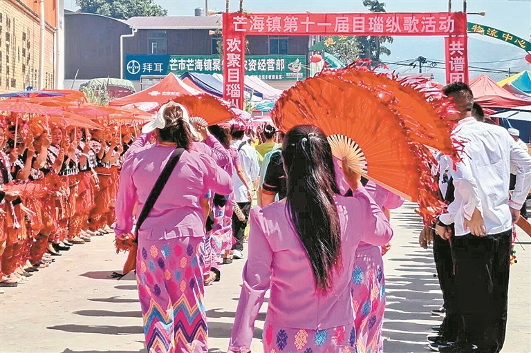 3月20日,芒海镇中缅边境特色街开街,该镇2026年目瑙纵歌系列活动也拉开了序幕。