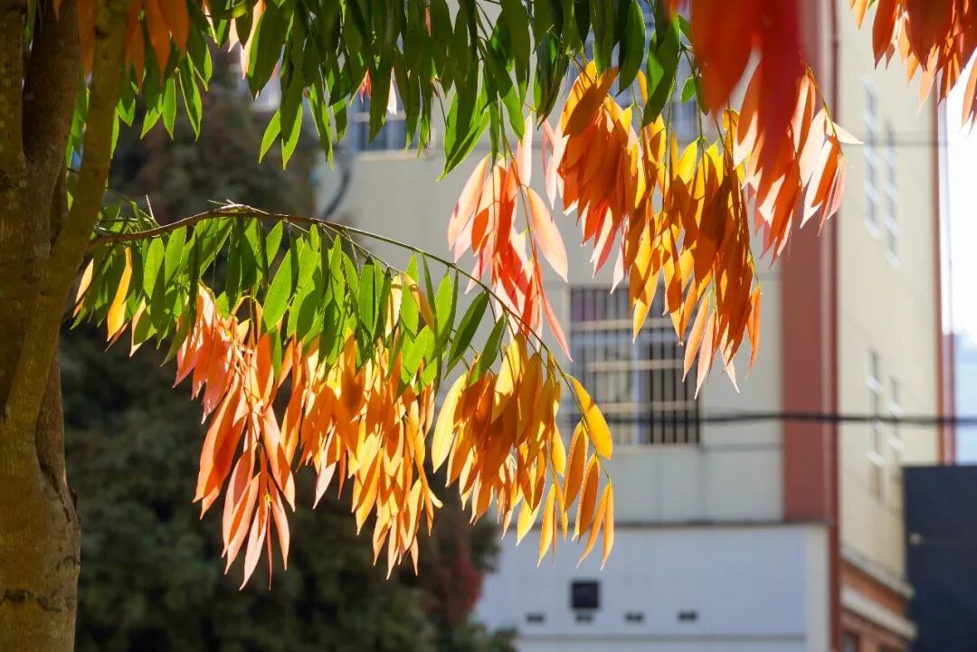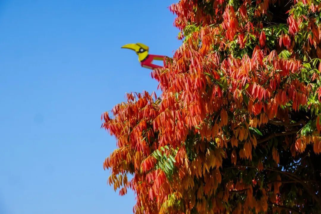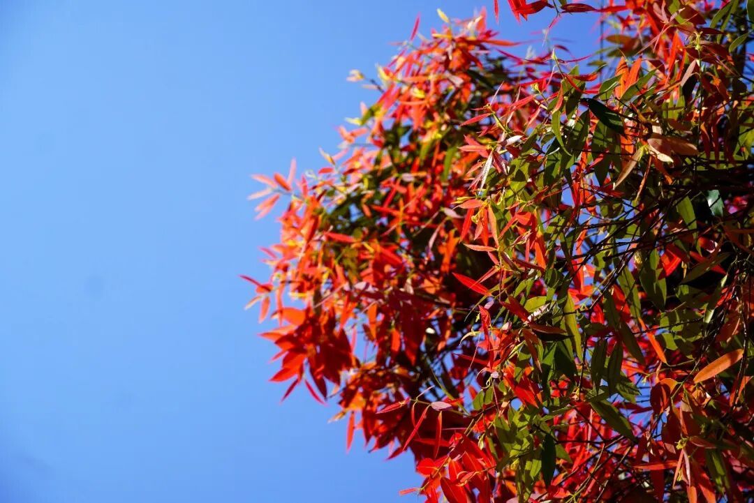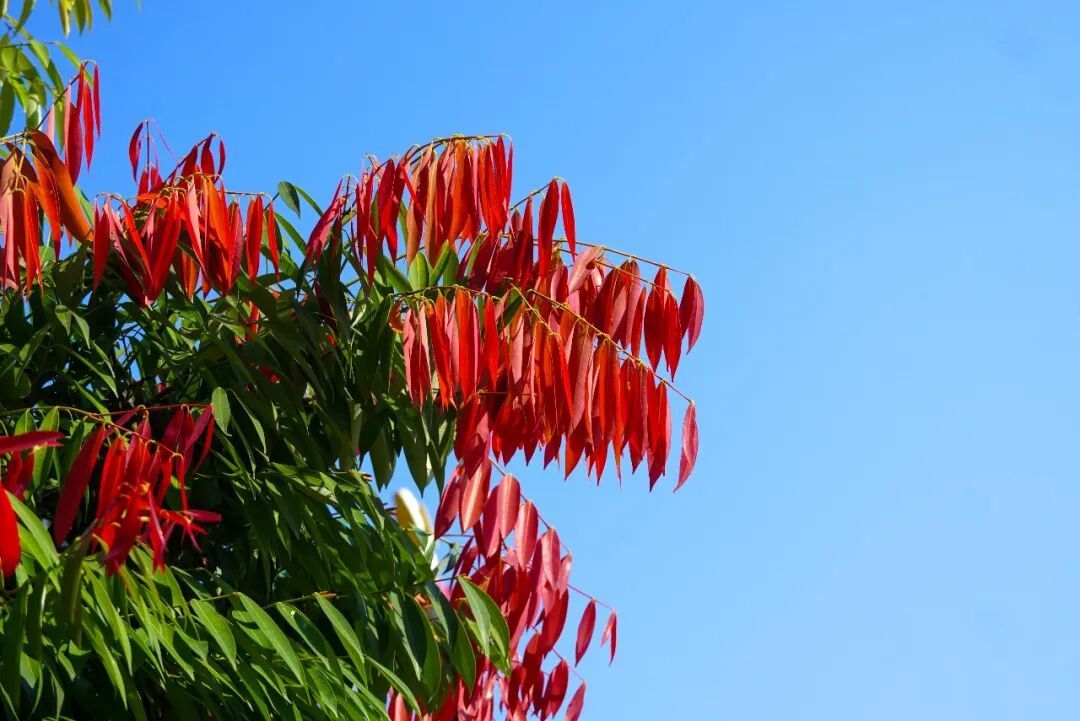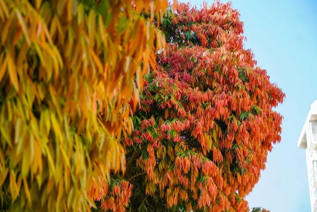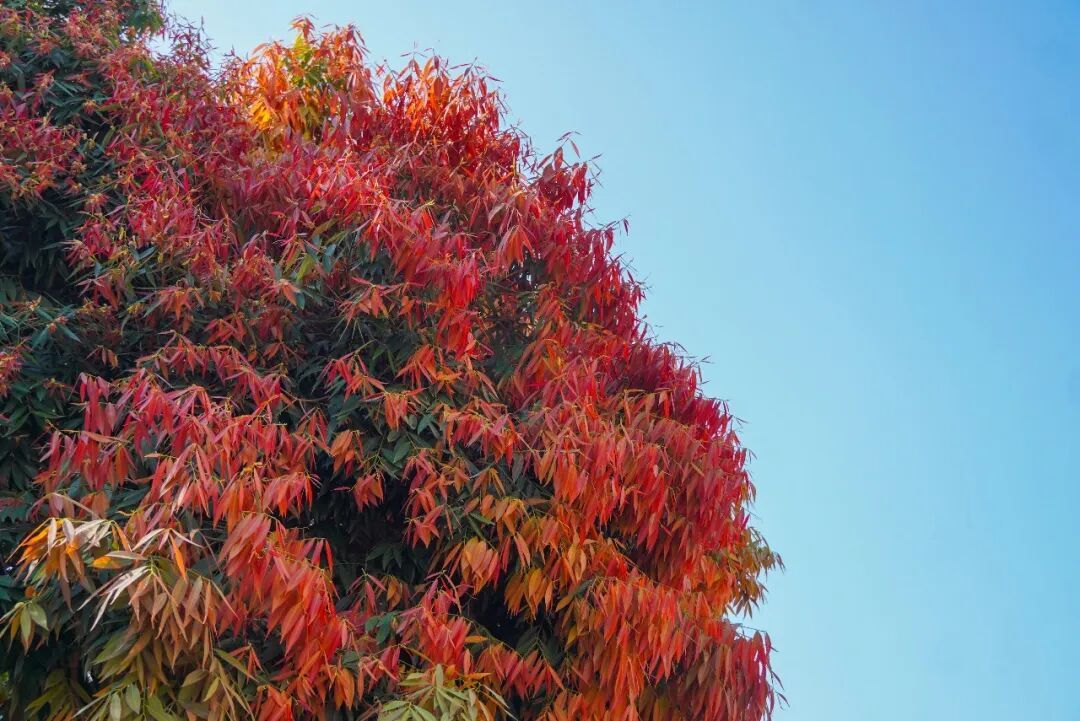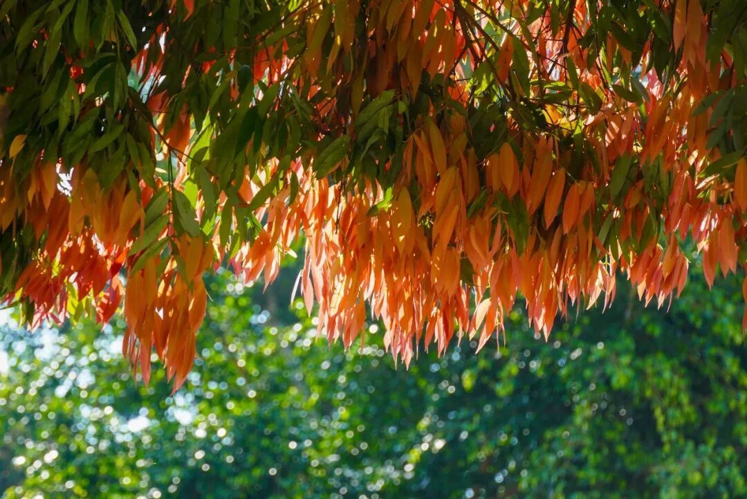 每年春季,新叶次第萌发,从嫩粉、绯红到酒红,层层晕染,与深绿老叶交织,像大自然精心调配的春日油画。