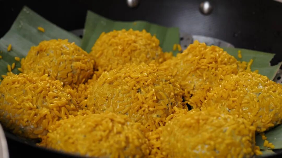 再滚上一层染黄的糯米