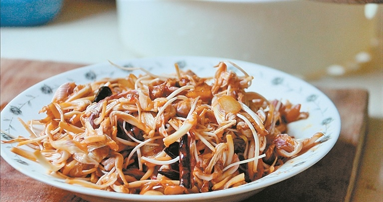 新鲜采摘的白露花经焯水、浸泡去涩后,或清炒,或煮汤,或搭配腊肉爆炒,花香清甜,口感鲜嫩,是独属于家乡的春日美味。一口花菜下肚,儿时在山间奔跑、和家人一同拾花的画面便浮现在眼前。