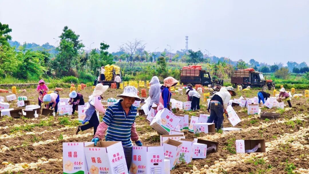 高效模式让土地真正实现“寸土生金”。每年11月“丽薯6号”马铃薯种下,春节前后采挖上市,亩产值可达6000元;2月接续种植“韩蜜甜王”西瓜,5月错峰上市,亩产值超4500元;6月,西瓜收完插秧,“云香1号”水稻10月成熟收割,亩产540公斤、亩产值2000元。三茬作物环环相扣、无缝衔接,亩均产值从2016年前的7000元跃升至13000元,每亩土地年增收6000元。据了解,弄以村民小组2025年三熟制种植面积达600亩,占总耕地的95.8%,年总产值780万元,预计2026年总产值将突破800万元。