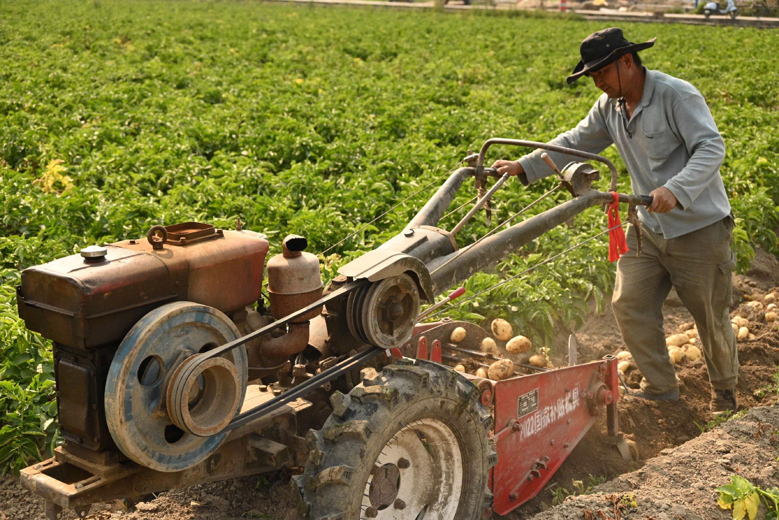 春收时节,云南省德宏傣族景颇族自治州盈江县太平镇的田野里一片繁忙,3.3万亩马铃薯迎来丰收季,连片田地翻滚着金色波浪。