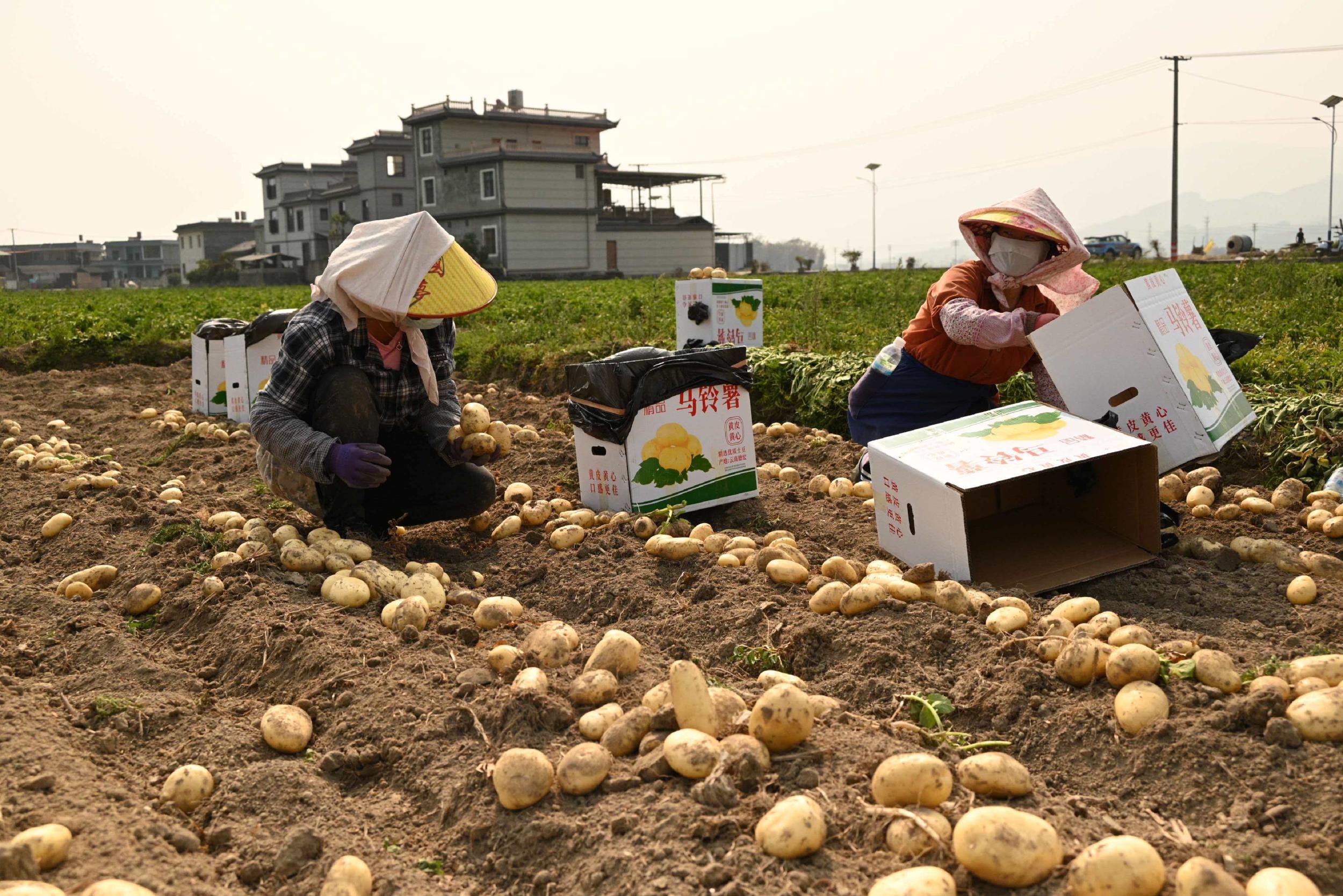 春染田畴,薯香满盈。春收时节,云南省德宏傣族景颇族自治州盈江县太平镇的田野里一片繁忙,3.3万亩马铃薯迎来丰收季,连片田地翻滚着金色波浪。农户们弯腰采挖、分拣装袋,一筐筐带着泥土芬芳的马铃薯装车启运,源源不断销往昆明、成都、长沙等全国各大城市。看着一车车“金疙瘩”即将转化为实实在在的收入,农户们脸上洋溢着丰收的喜悦。