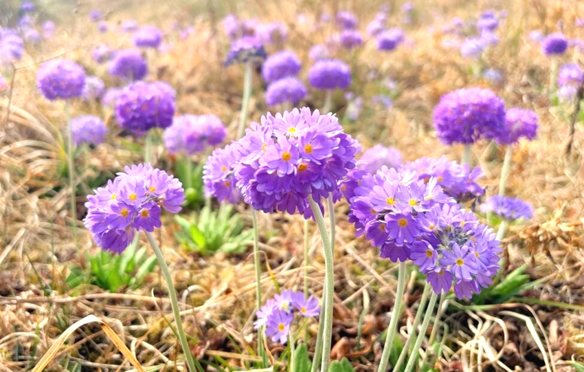 报春花的根,深扎在北半球温带与高山的土壤里,沿喜马拉雅山两侧至我国云南、四川西部,是它最眷恋的家园。在云南这片“植物王国”的土地上,它更是独得偏爱,明清时便已是民间传统盆花,跻身“云南八大名花”之列,与山茶、杜鹃并肩,成为滇地春日里最动人的底色。在哀牢山腹地的云南省楚雄彝族自治州南华县,立春时节,报春花漫山遍野,粉白、浅紫、绯红的花簇从山腰泼洒而下,像一幅被春风揉碎的水彩画;溪涧旁、枯木边,一丛丛相拥成海,细长的花葶顶着伞形花序,花瓣轻颤,似春神撒下的星子,又像彝族儿女起舞时飞扬的彩裙。报春花的这抹绚烂,是山野写给春天的第一封情书,也是大地最深情的告白。